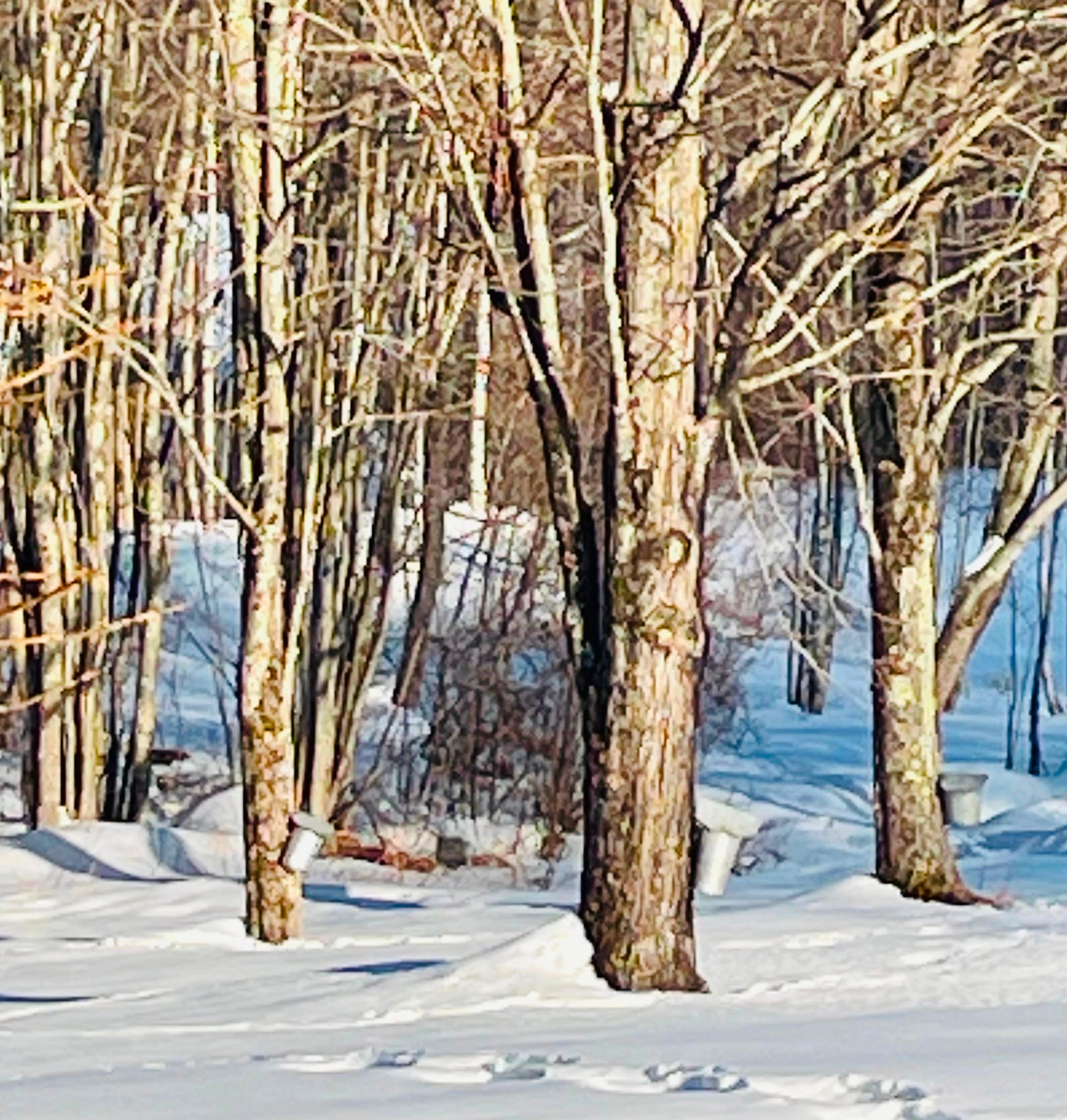 Not wanting to imagine the trees wincing at such intrusions, I preferred to think of this part of the process as something akin to milking cows with full udders, or maybe giving blood to the Red Cross: the maples had plenty of sap to give and would keep making more.